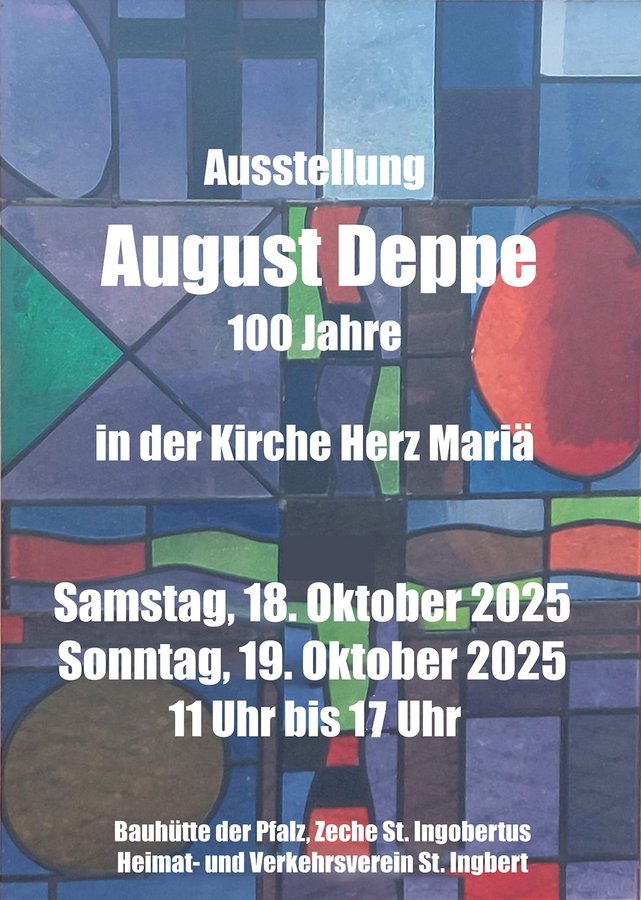 August Ludwig Deppe wurde am 22.12.1925 in Homburg-Beeden geboren. Die Bauhütte Pfalz, Zeche St. Ingobertus und der Heimat- und Verkehrsverein St. Ingbert feiern 100 Jahre August Deppe im Rahmen einer Ausstellung.