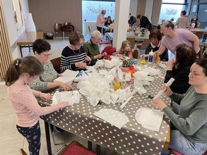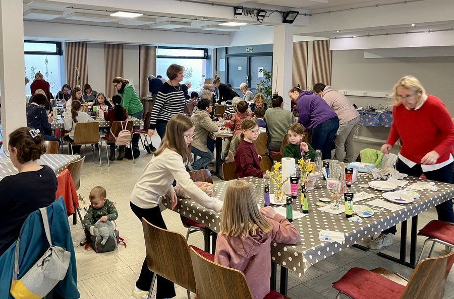 Zum zweiten Mal lud der Gemeindeausschuss St. Franziskus zum Kreativ-Café in die Unterkirche St. Franziskus ein. Über 60 Bastelfreudige von 2 bis 93 Jahren kamen, um miteinander, nebeneinander und füreinander kunterbunte Frühlings- und Osterdekorationen zu basteln. Das Orga-Team hatte im Vorfeld ganz verschiedene Bastelangebote vorbereitet, so dass jeder, ob Bastelanfänger oder Bastelprofi, mit dekorativen Dingen zufrieden nach Hause ging. Beim Basteln oder in einer Pause mit Kaffee und Kuchen ergaben sich viele Möglichkeiten, miteinander ins Gespräch zu kommen. Wir vom Gemeindeausschuss sind überwältigt, dass dieses Angebot so gut über alle Generationen hinweg angenommen wird und freuen uns auf das nächste Kreativ-Café im Herbst.